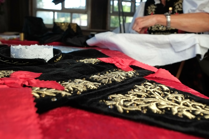 Bei dieser Vorführung zeigt Ihnen die Trachtengruppe "Trachten sticken" mit Goldstickerei.